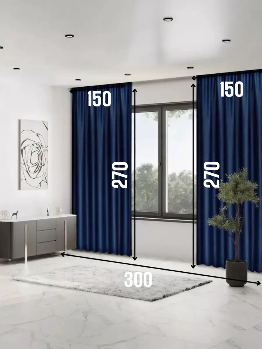Чтобы рассчитать минимальную ширину одной шторы, вам нужно замерить расстояние между правым и левым краем карниза.