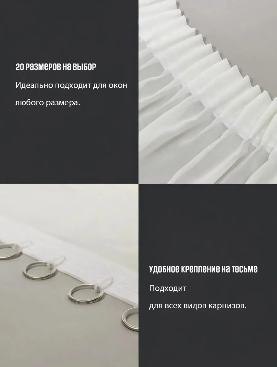 Размер указан в расправленном виде (без сборки). Складки формируются с помощью тесьмы — достаточно стянуть её до нужной ширины.