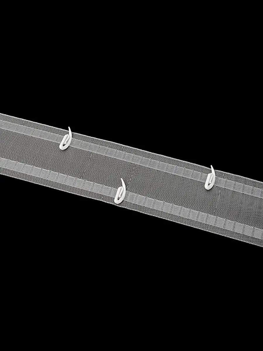 Лента достаточно жёсткая, поэтому хорошо держит заданную форму и помогает добиться аккуратного верхнего края даже на плотных портьерах. Широкие петли располагаются по всей длине, обеспечивая надежную фиксацию и стабильную геометрию складок.