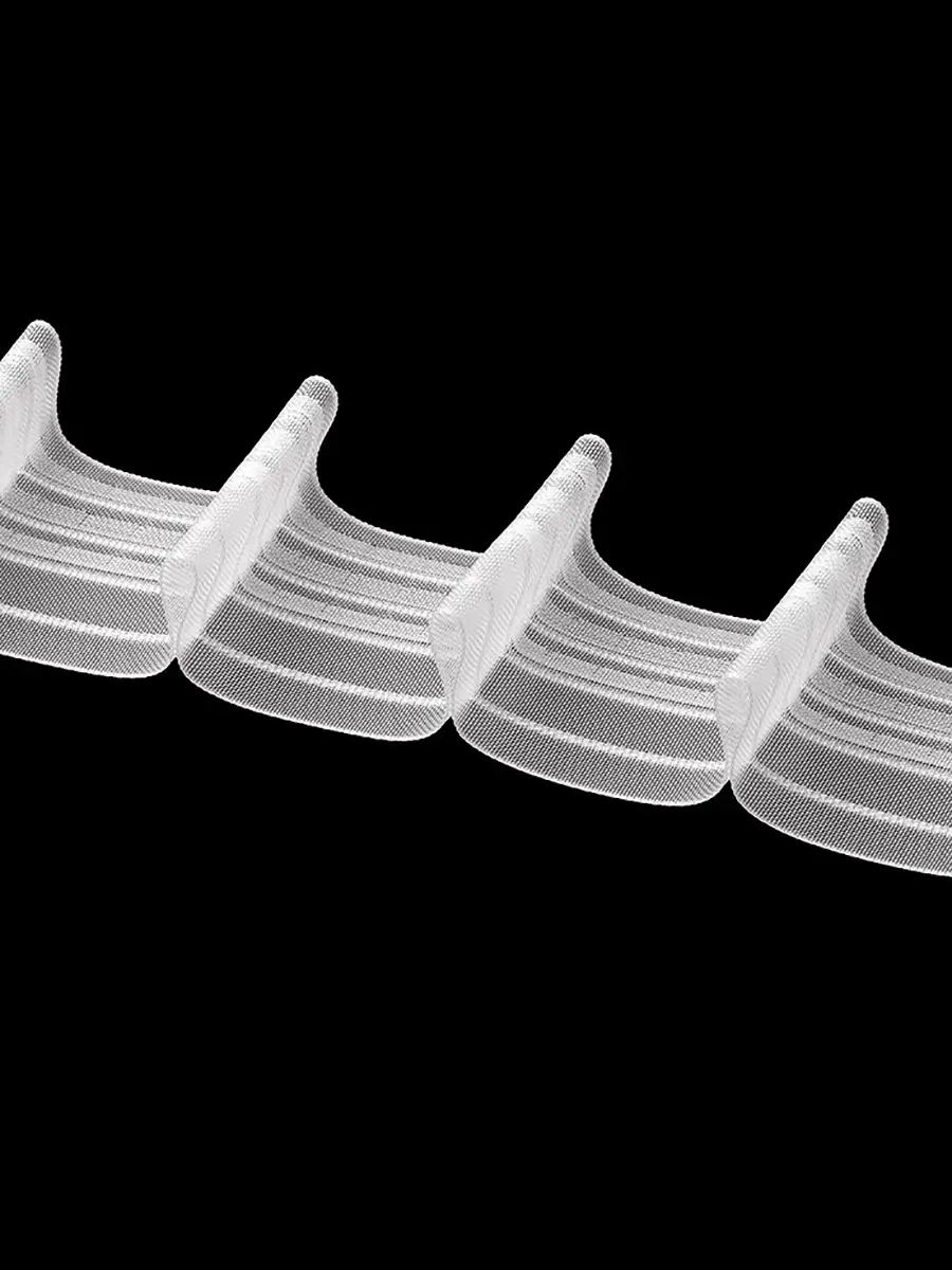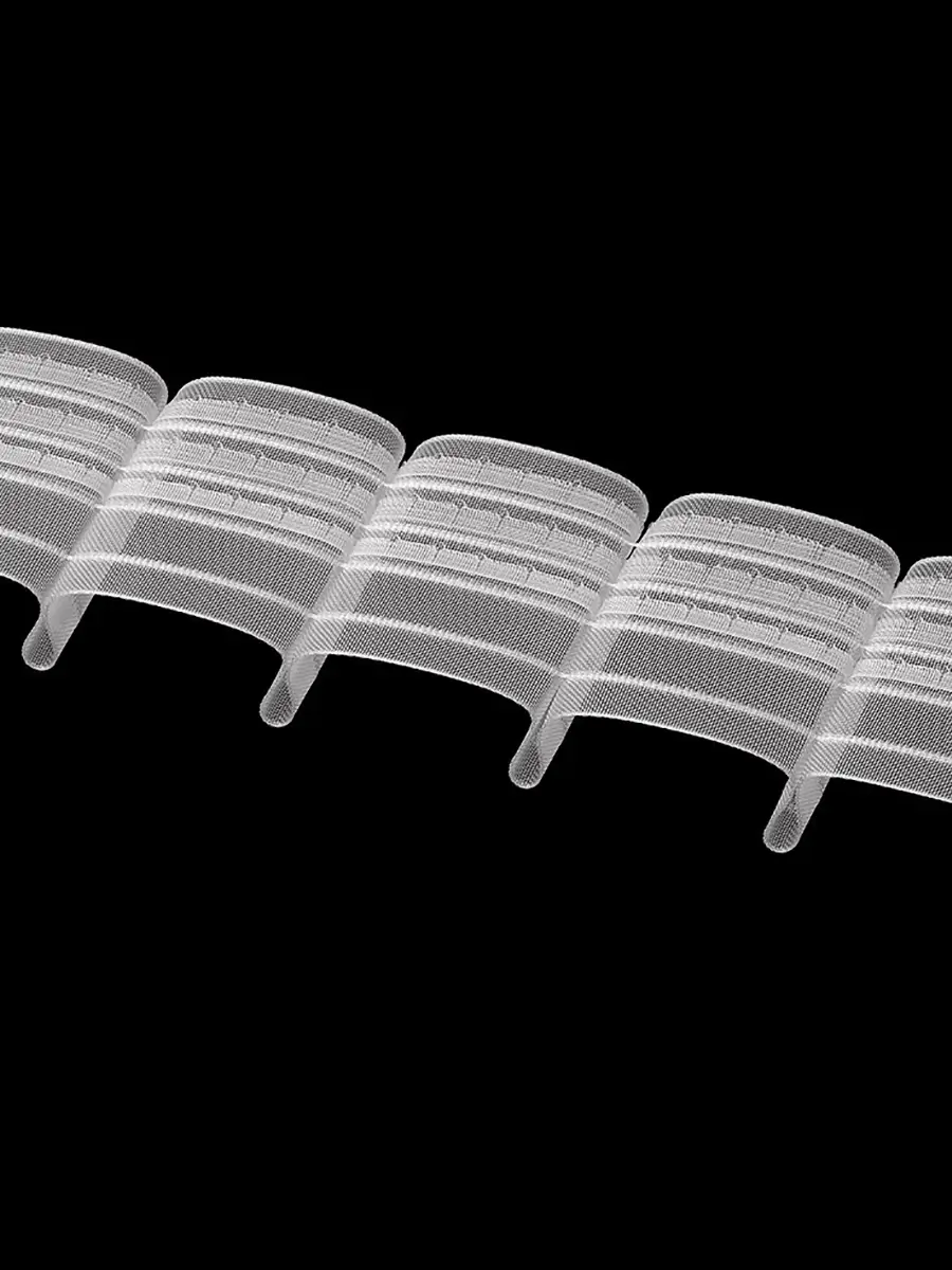 Лента 3-карманная, что позволяет удобно регулировать высоту посадки на крючках. Для стягивания предусмотрено 4 корда (лески) — сборка получается плотной и равномерной по всей длине. Расстояние между складками 5,5 см обеспечивает красивый ритм драпировки и аккуратный внешний вид шторы.