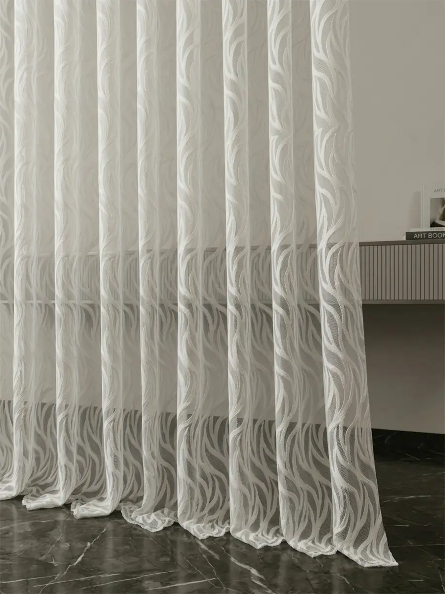 По структуре тюль лёгкая и воздушная, хорошо ложится в складки и красиво смотрится как в гостиной, так и в спальне. За счёт этого даже простое оформление выглядит аккуратно и продуманно.