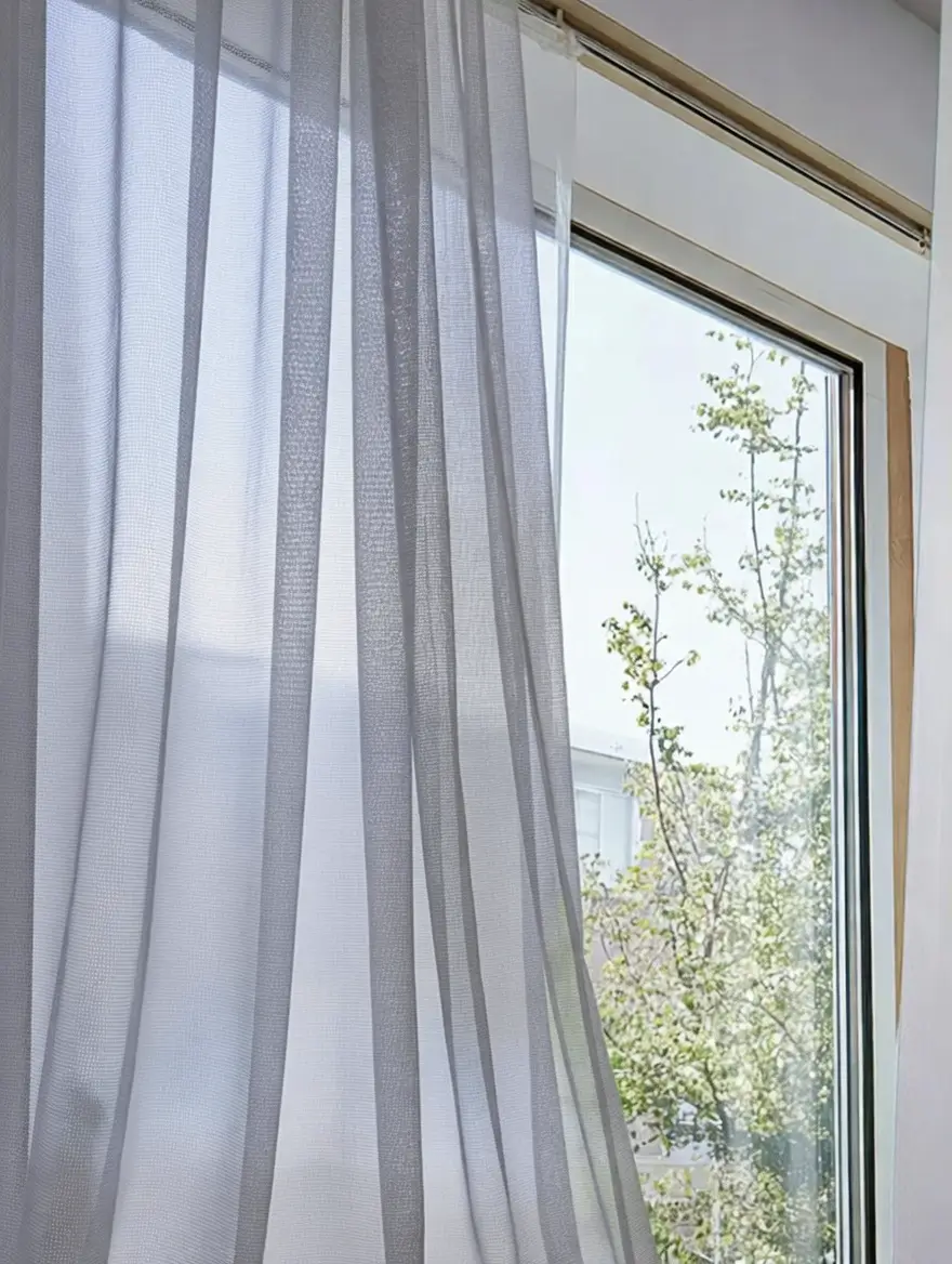 Тюль красиво драпируется и образует мягкие складки, благодаря чему окно выглядит аккуратно и естественно. Такой вариант часто выбирают для оформления окон спальни и зала, где важно сохранить свет и добавить интерьеру мягкость оттенков.