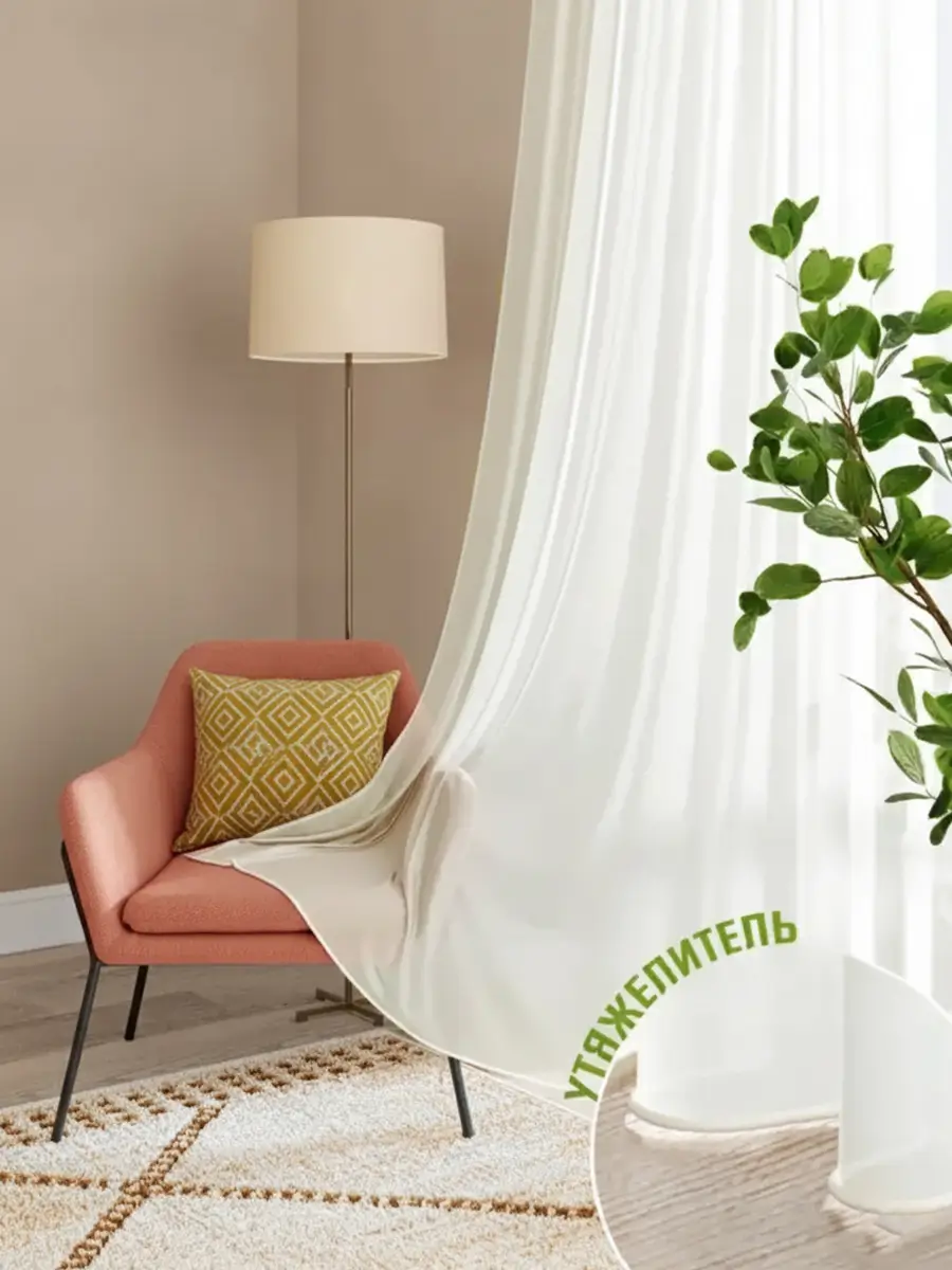 Тюль шифон лёгкая, дышащая и проста в уходе. Благодаря утяжелителю штора всегда выглядит ухоженной — без заломов и перекосов. Это решение, которое сочетает красоту и практичность.