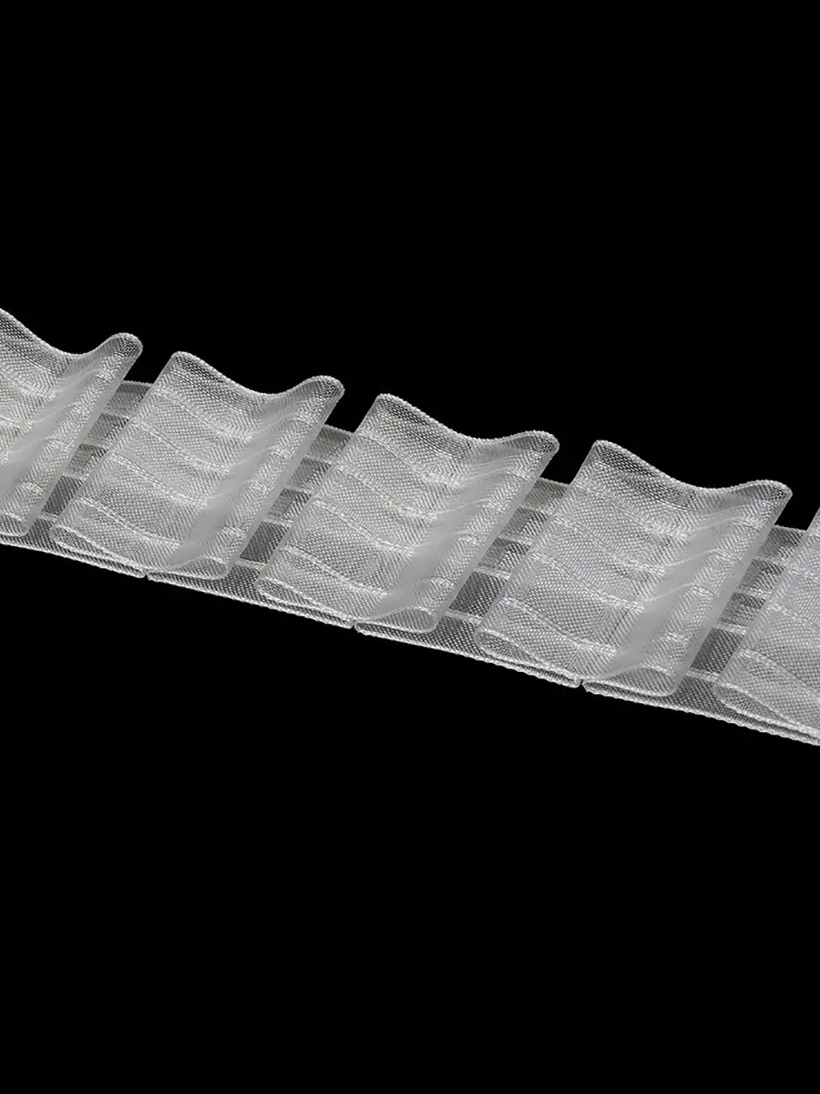 Шторная тесьма предназначена для создания красивых бантовых складок — аккуратных, объёмных и симметричных. Благодаря коэффициенту сборки 1:3 ткань собирается плотно и смотрится пышно, поэтому шторы получаются выразительными и эффектными.