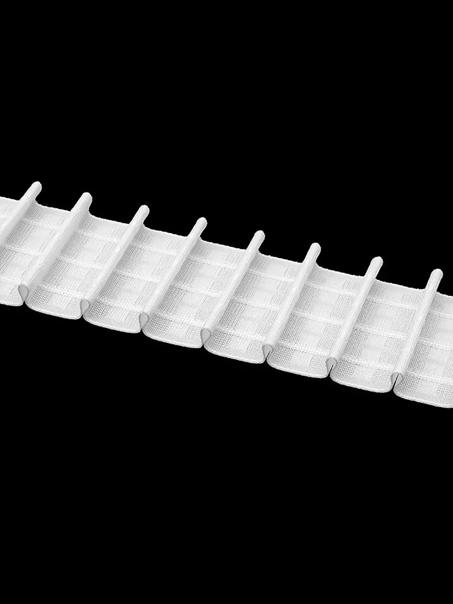 Шторная лента используется для создания ровной драпировки карандашного типа (столбики) с коэффициентом сборки 1:2. Складки формируются аккуратно и равномерно, благодаря чему верх шторы смотрится красиво и гармонично.