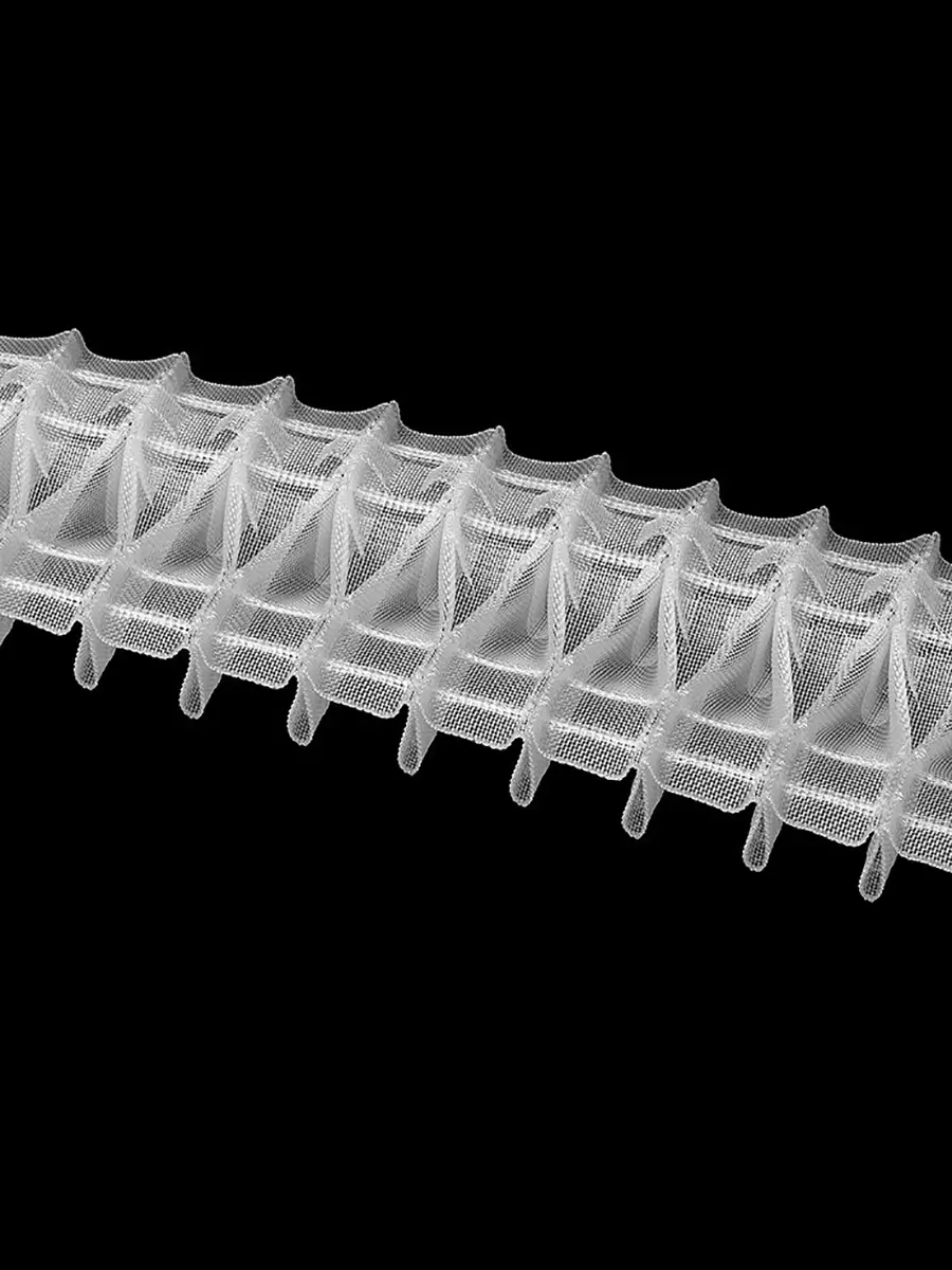 Шторная лента предназначена для создания декоративной сборки буфы / шахматка, которая придаёт верху шторы объёмный и эффектный вид. Коэффициент сборки 1:2,5 помогает получить плотную и красивую драпировку — складки формируются ровно и аккуратно по всей длине полотна.