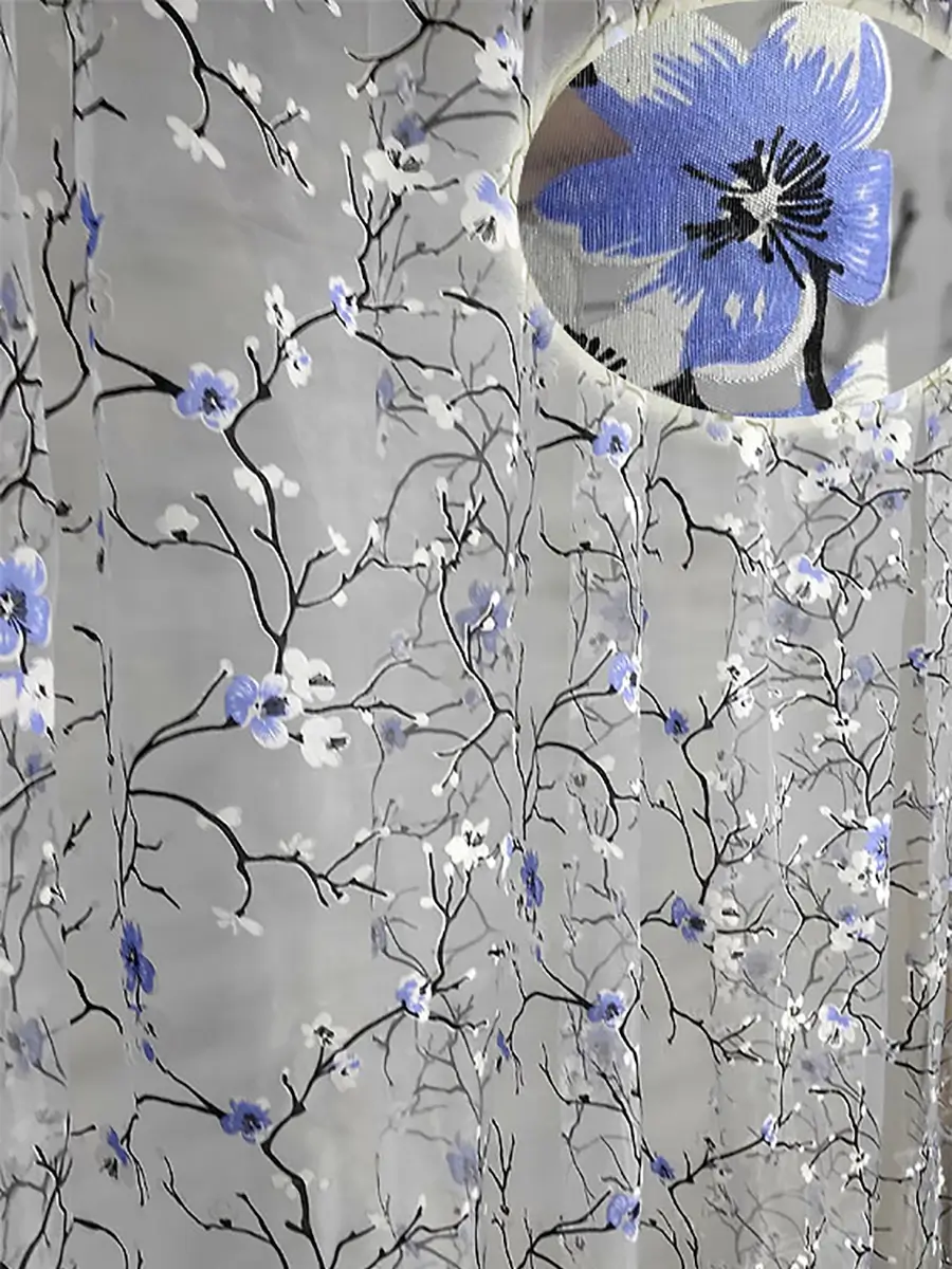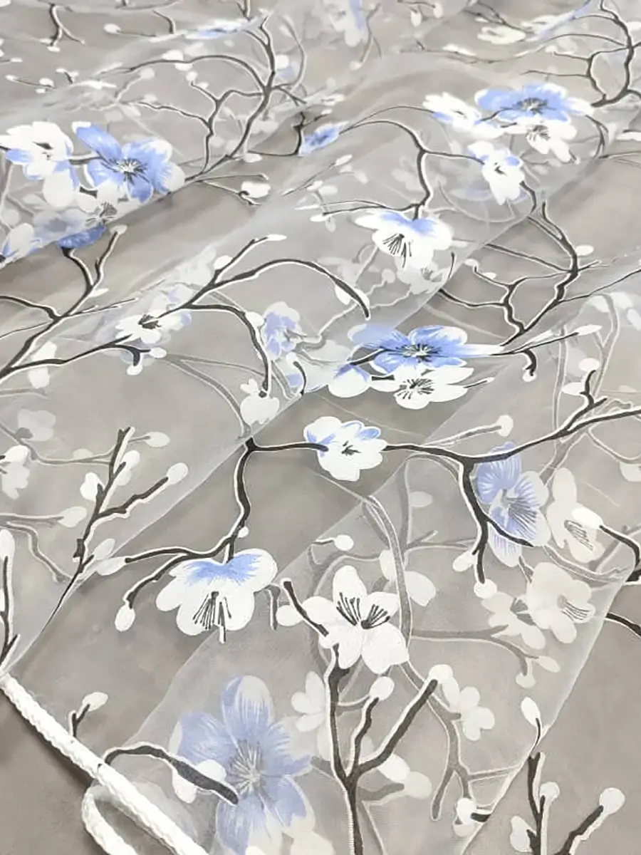 Купити тюль з квітами у блакитних та білих тонах – стильне рішення для кухні, спальні чи вітальні. Легка органза з візерунком гілочок та квітів м’яко розсіює світло, створює затишок та гармонійно доповнює інтер’єр.