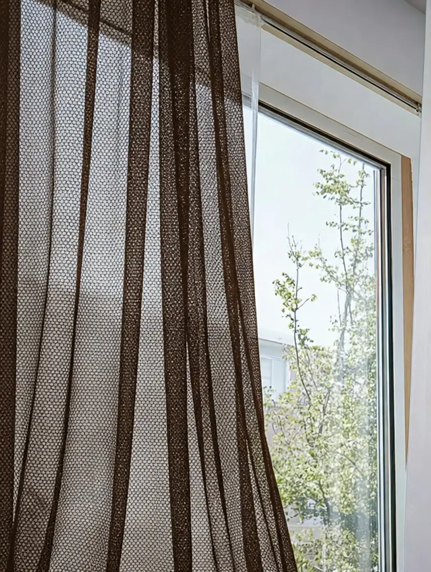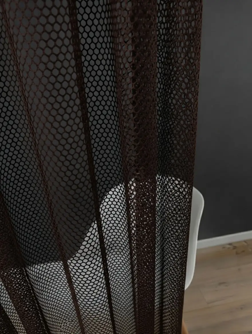 Тюль сетка Viva венге — стильная тюль для окон, которая помогает создать выразительный интерьер спальни или зала. Глубокий оттенок венге делает окно заметной частью интерьера и хорошо сочетается со светлыми шторами и текстилем.